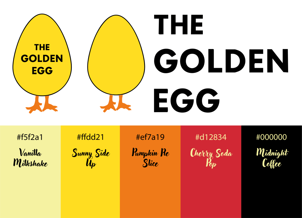 The branding strategy for The Golden Egg Diner is centered on warmth, familiarity, and playful charm. The logo—a golden egg perched on chicken legs—captures both humor and nostalgia, instantly signaling comfort food and a lighthearted dining experience. The visual identity uses bold typography and a sunny yellow palette paired with rich reds and earthy neutrals to evoke energy, appetite, and approachability.