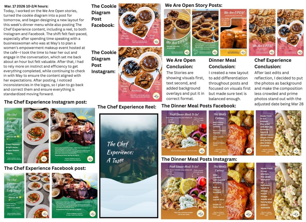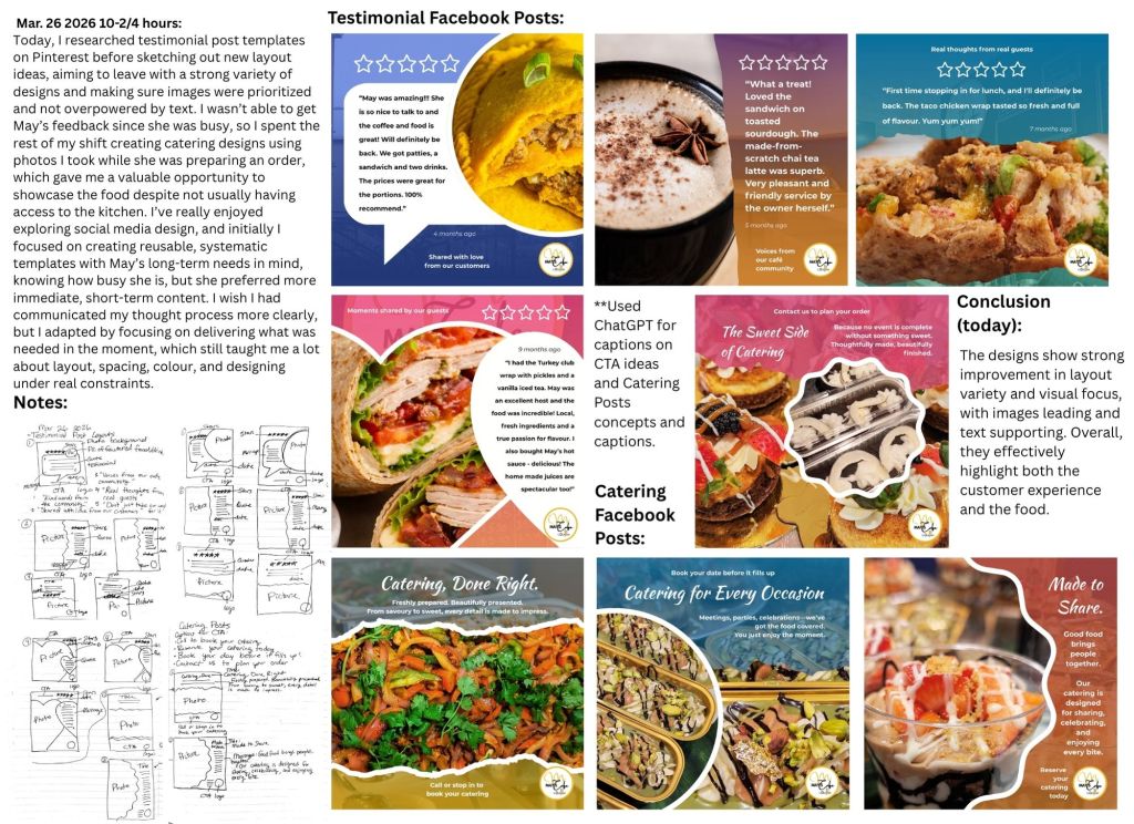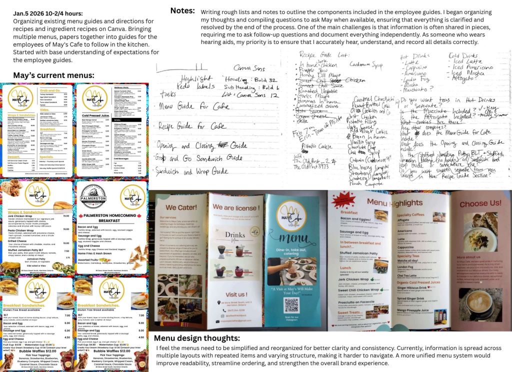 These challenges revealed an opportunity to introduce structure, clarity, and consistency across both operations and branding at May’s Café. By developing standardized systems for recipes and employee guides, alongside a cohesive visual identity and content strategy, the project could improve internal efficiency while strengthening the café’s external presence. There was also a clear opportunity to shift toward more authentic, visually driven content that better reflected the quality of the products and the community-focused atmosphere of the business.