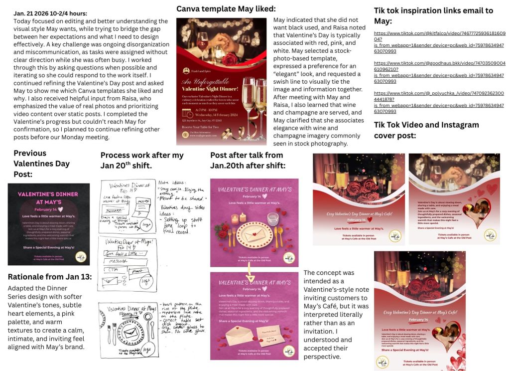 At the start of the project, May’s Café operated without clear systems for both internal processes and external communication. Recipes and workflows were inconsistently documented, often relying on verbal instruction, while menus and design materials lacked structure, hierarchy, and visual consistency. On the customer-facing side, social media content felt fragmented and repetitive, without a cohesive brand direction. Combined with limited time, evolving expectations, and incomplete design briefs, these challenges created inefficiencies in daily operations and made it difficult to present a clear, unified brand experience.