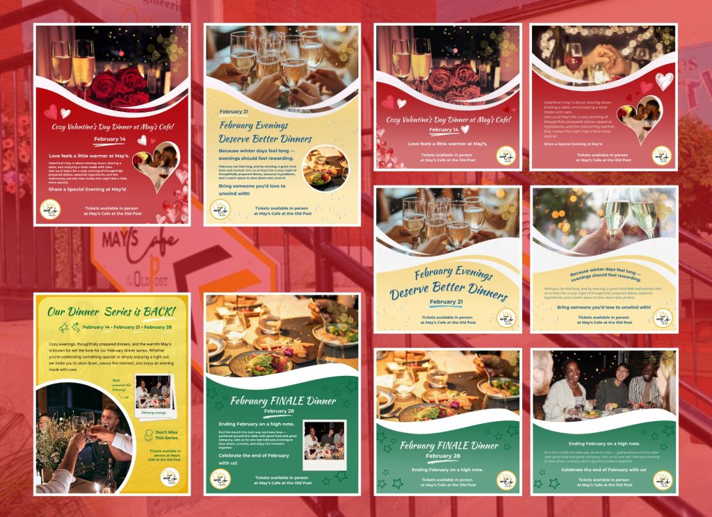 I developed a flexible content system for social media, including reusable templates for weekly specials, events, testimonials, and announcements. This allowed for faster content creation while maintaining a consistent brand presence across platforms.